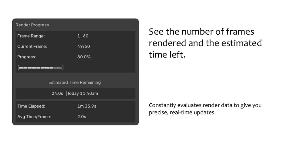 Say goodbye to waiting blindly! Get accurate time predictions based on current render speed.